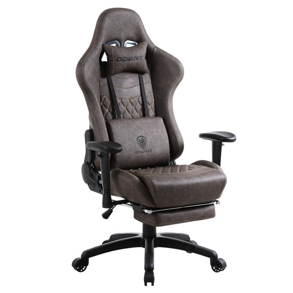 Dowinx Gaming Chair Office Chair Pc Chair With Massage Lumbar Support Vintage Style Pu Leather High Back Adjustable Swivel Task Chair With Footrest Brown Amazon Ca Home